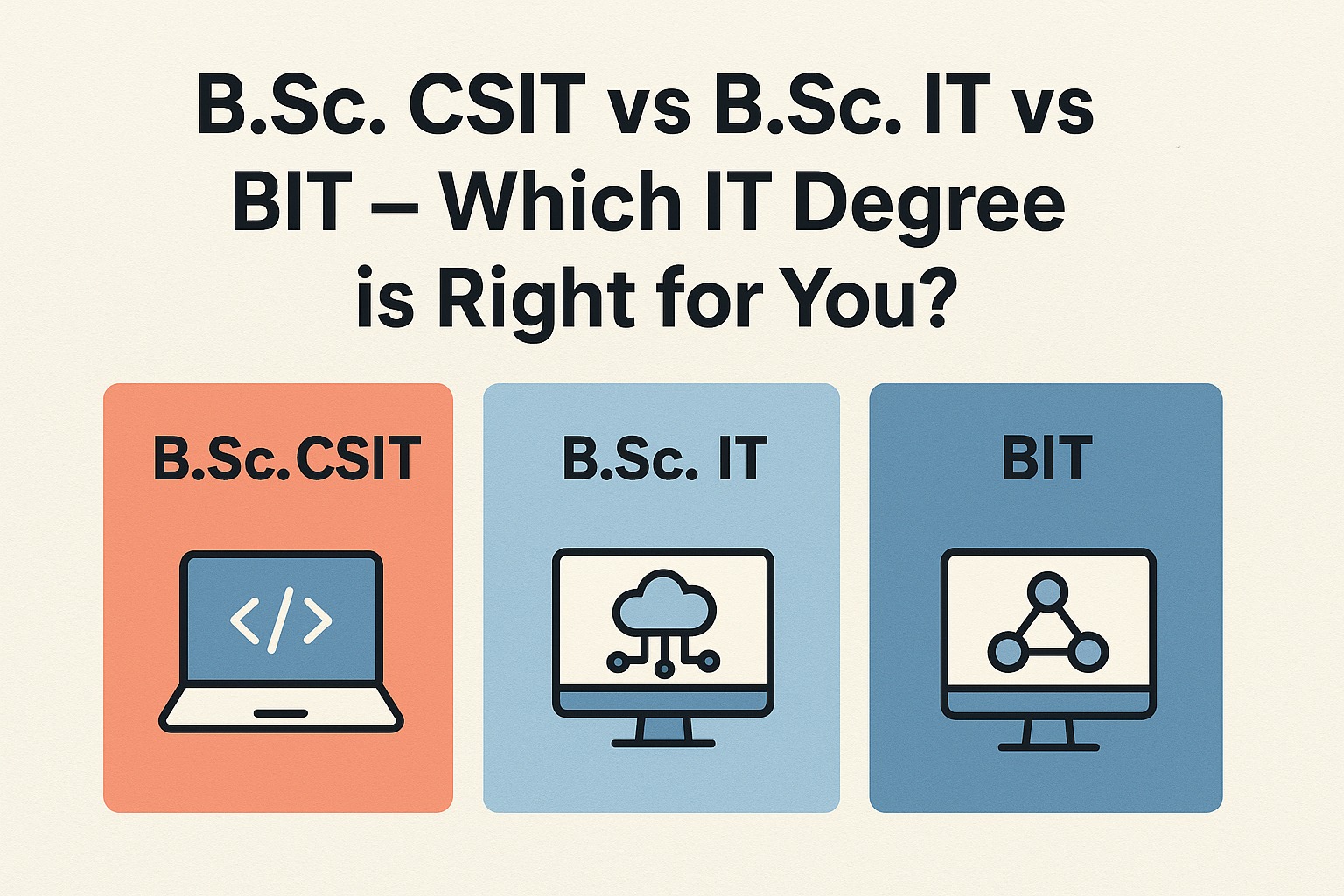 Choosing the right undergraduate program in Information Technology (IT) is one of the most important decisions for students aspiring to build a career in the digital era. In Nepal, the most popular choices are B.Sc. CSIT (Bachelor of Science in Computer Science and Information Technology), B.Sc. IT (Bachelor of Science in Information Technology), and BIT (Bachelor in Information Technology). While these programs sound similar, there are significant differences in terms of curriculum, affiliation, career outcomes, and global recognition.